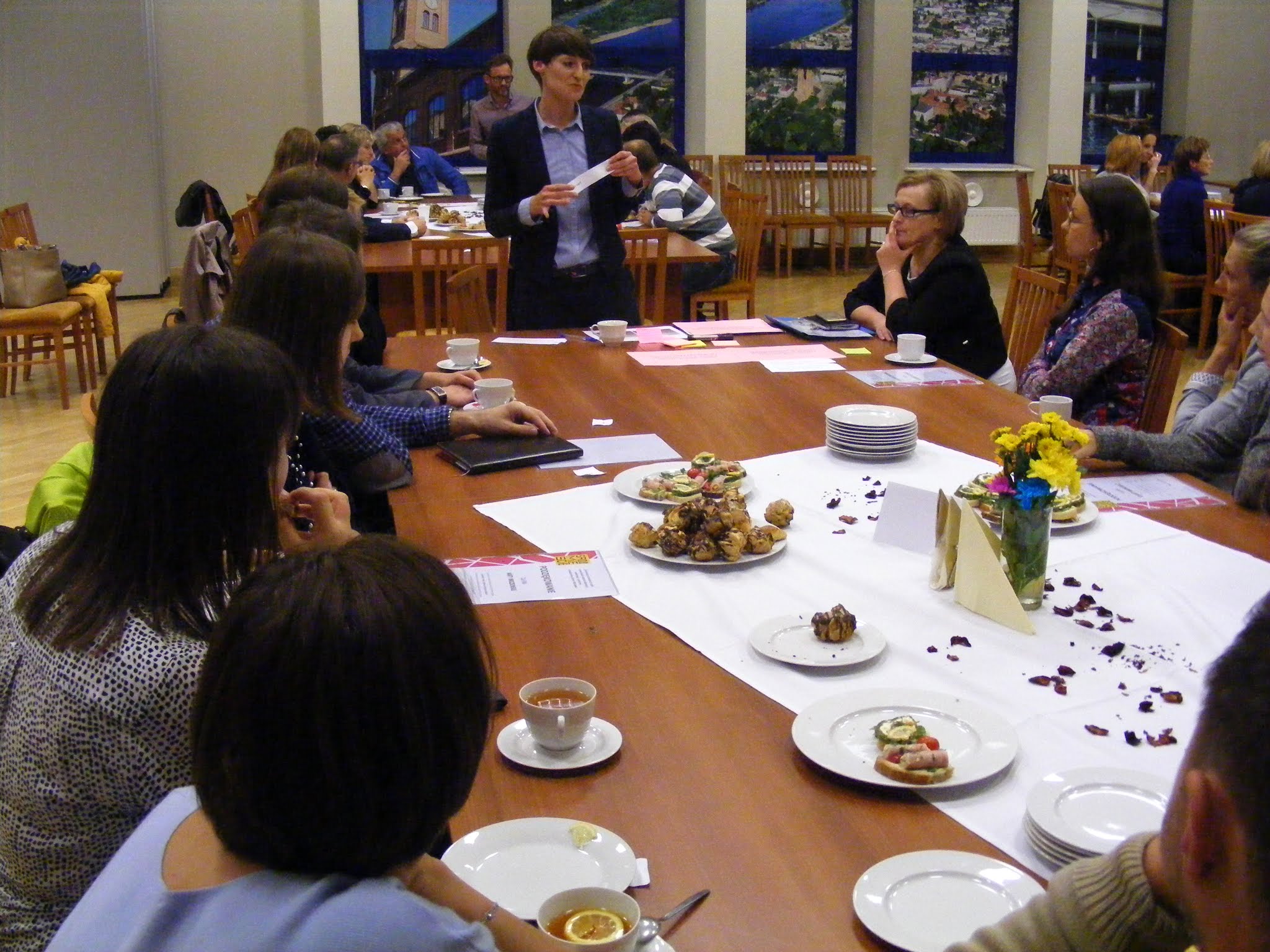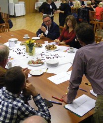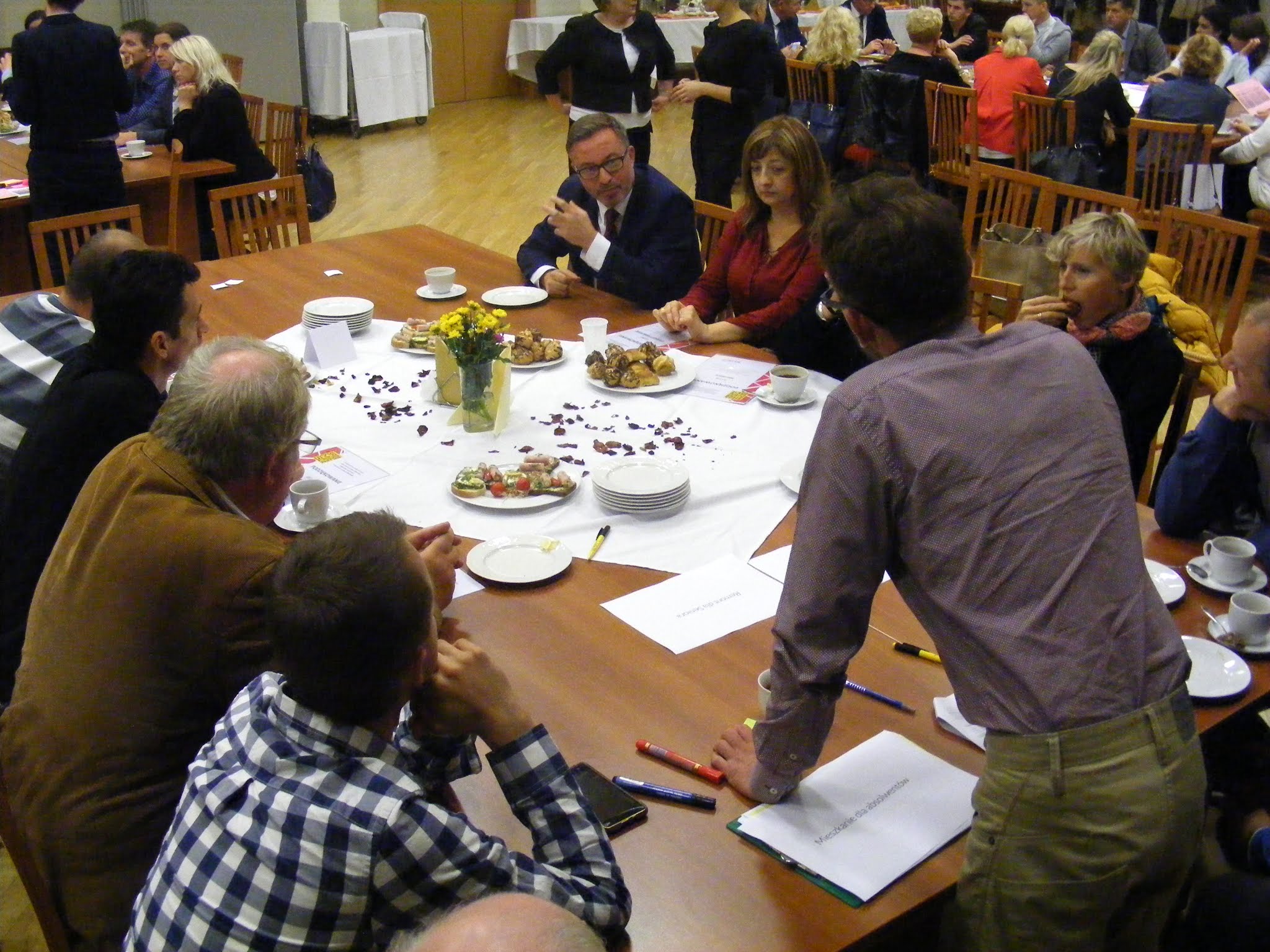 W drugiej części spotkania uczestniczki i uczestnicy podzielili się na mniejsze grupy, pracując przy stolikach tematycznych koordynowanych przez konkretnych moderatorów i moderatorki: „Dobry start dzieci i młodzieży ze Śródmieścia”, „Aktywizacja społeczna, kulturalna i obywatelska mieszkańców Śródmieścia”, „Aktywizacja zawodowa i wsparcie biznesu”, „Przestrzeń publiczna” oraz „Mieszkalnictwo”.