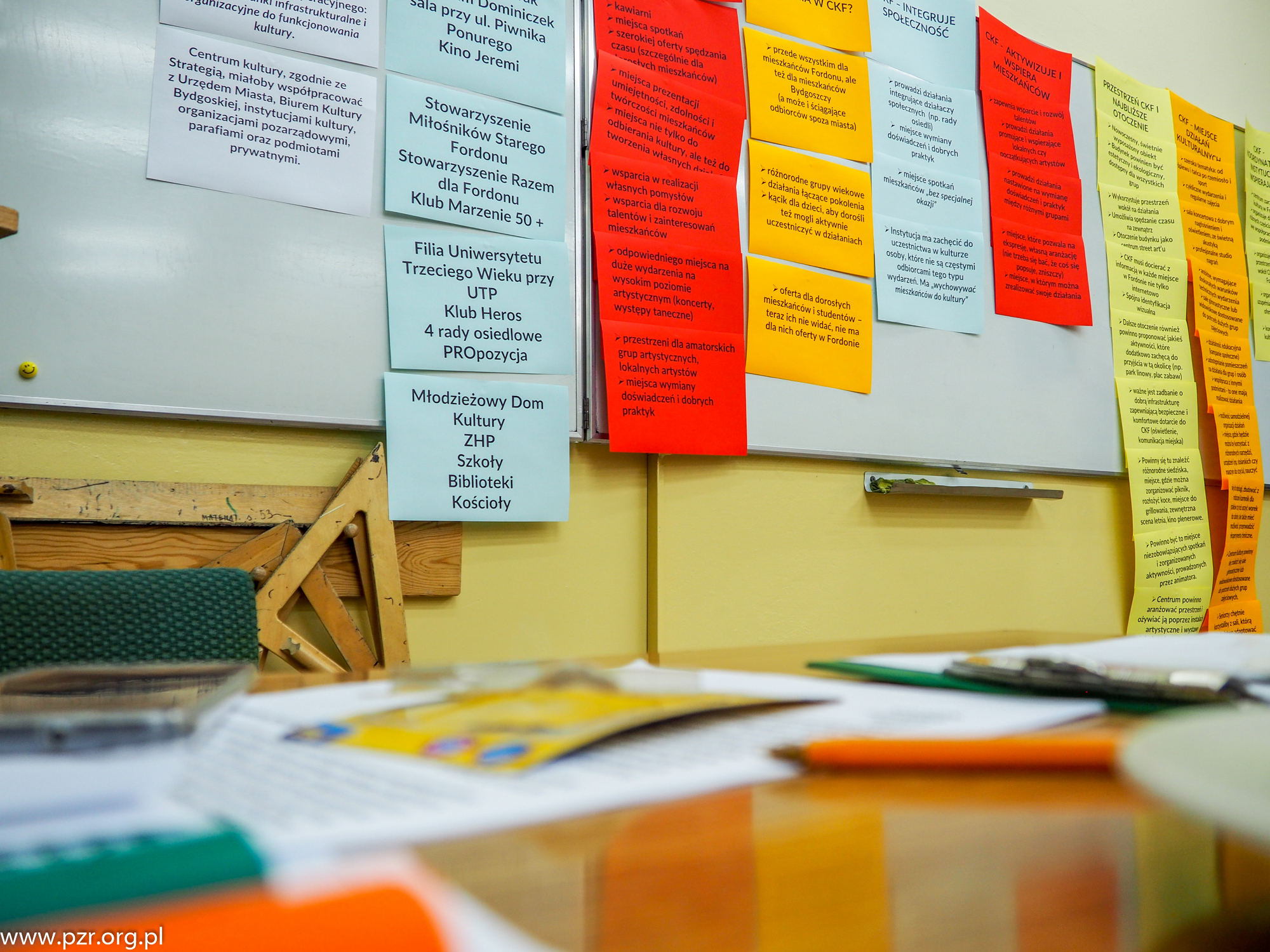 Kolejny etap działań diagnostycznych stanowiło przeprowadzenie zogniskowanych wywiadów grupowych z przedstawicielami różnych grup interesariuszy. Uczestnikami wywiadów byli odbiorcy i twórcy kultury, pracownicy administracji, eksperci, przedstawiciele organizacji pozarządowych, grup nieformalnych i rad osiedli, eksperci, rady osiedli, młodzież, dorośli, seniorzy. Część projektowa społecznego procesu projektowania CKF opierała się na pracy warsztatowej. Zadaniem warsztatów było wypracowanie celów i zakresu działania CKF, modelu zarządzania instytucją oraz zebranie pierwszych pomysłów na działania, które mogłyby być realizowane przez instytucję. Grupa warsztatowa wypracowała propozycje konkretnych rozwiązań dla zdiagnozowanych problemów i potrzeb związanych z nową instytucją kultury w Fordonie oraz w odniesieniu do problemów i wyzwań w obszarze społeczno-kulturalnym w tej części miasta. Spotkania odbyły się w grudniu 2019 r.